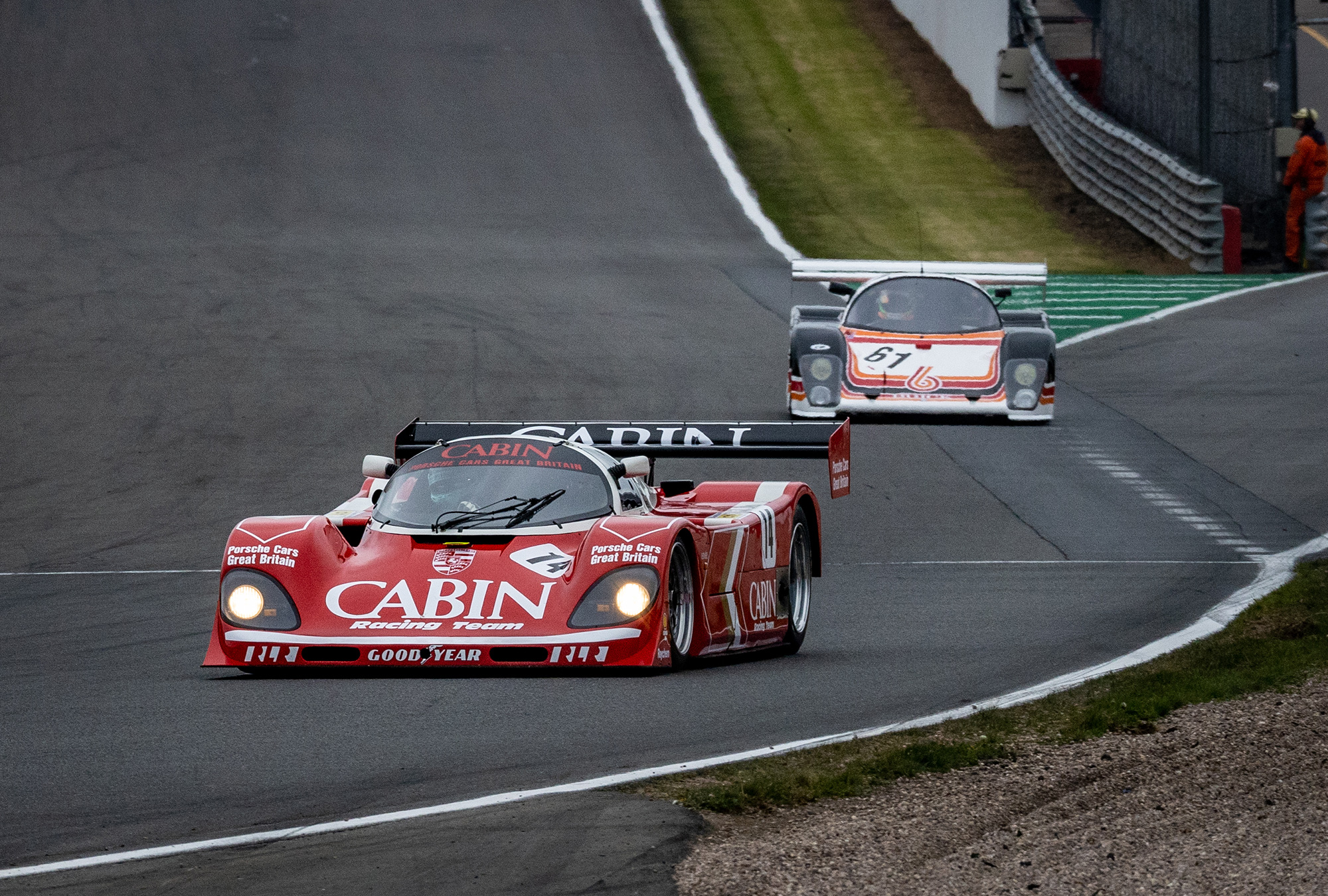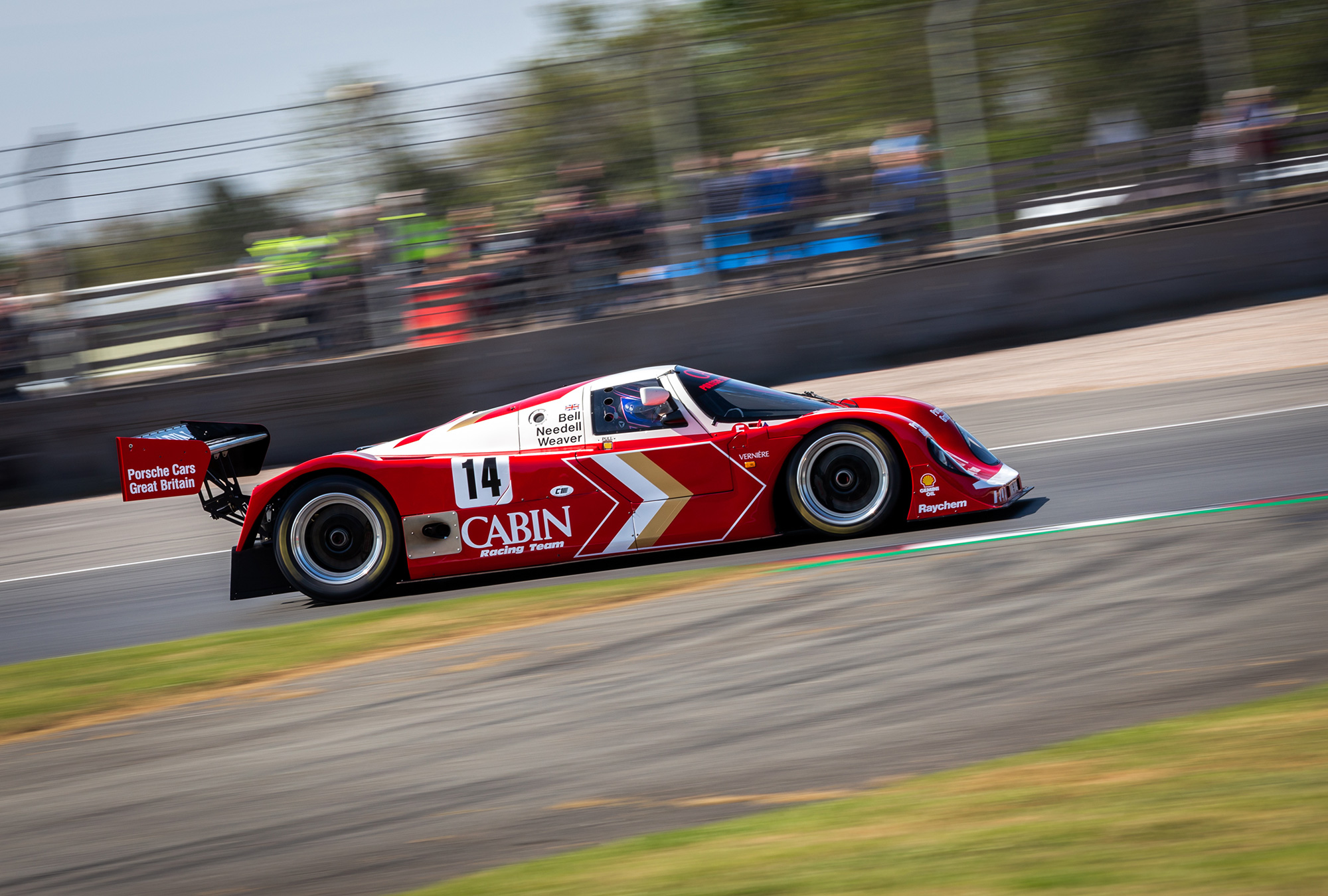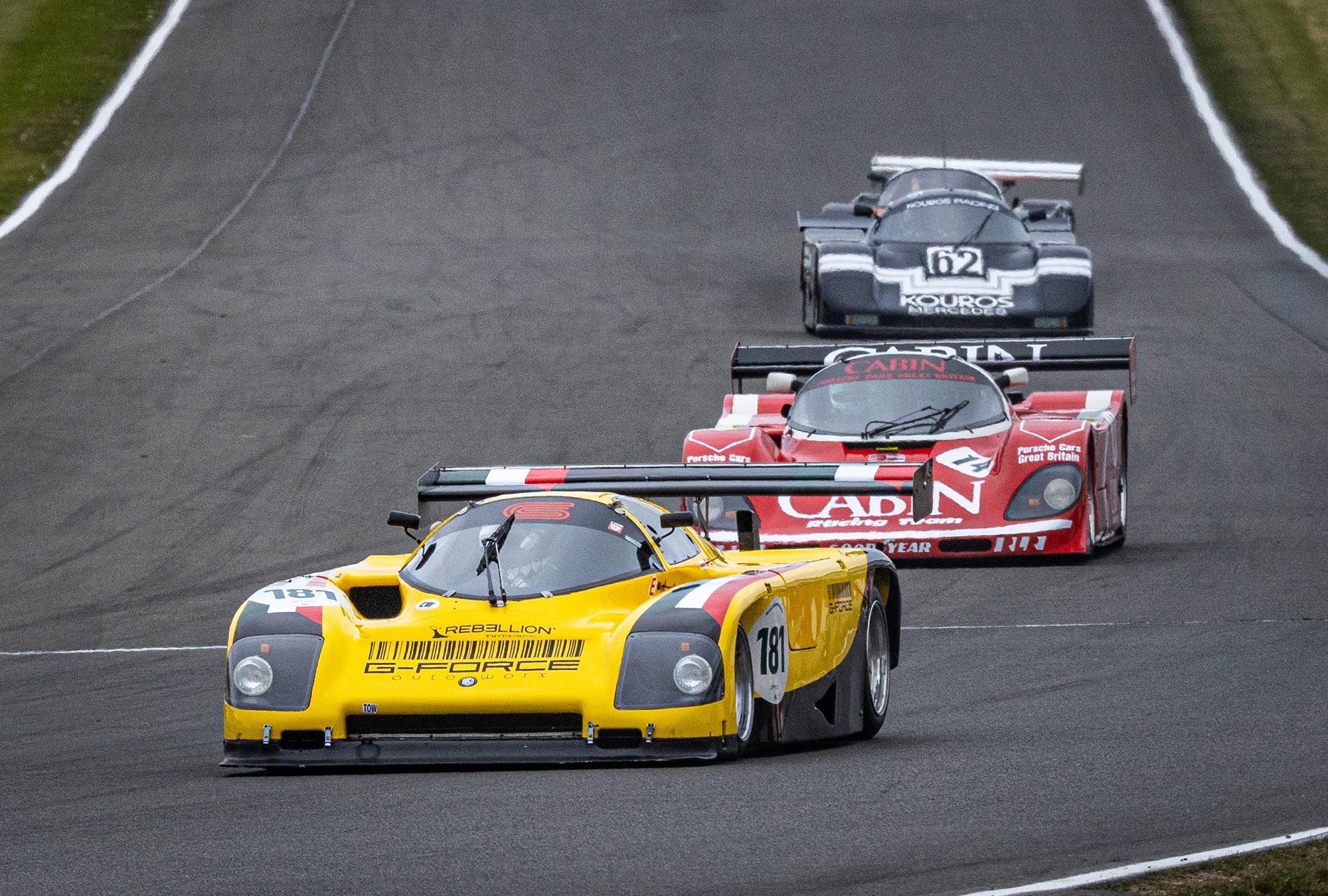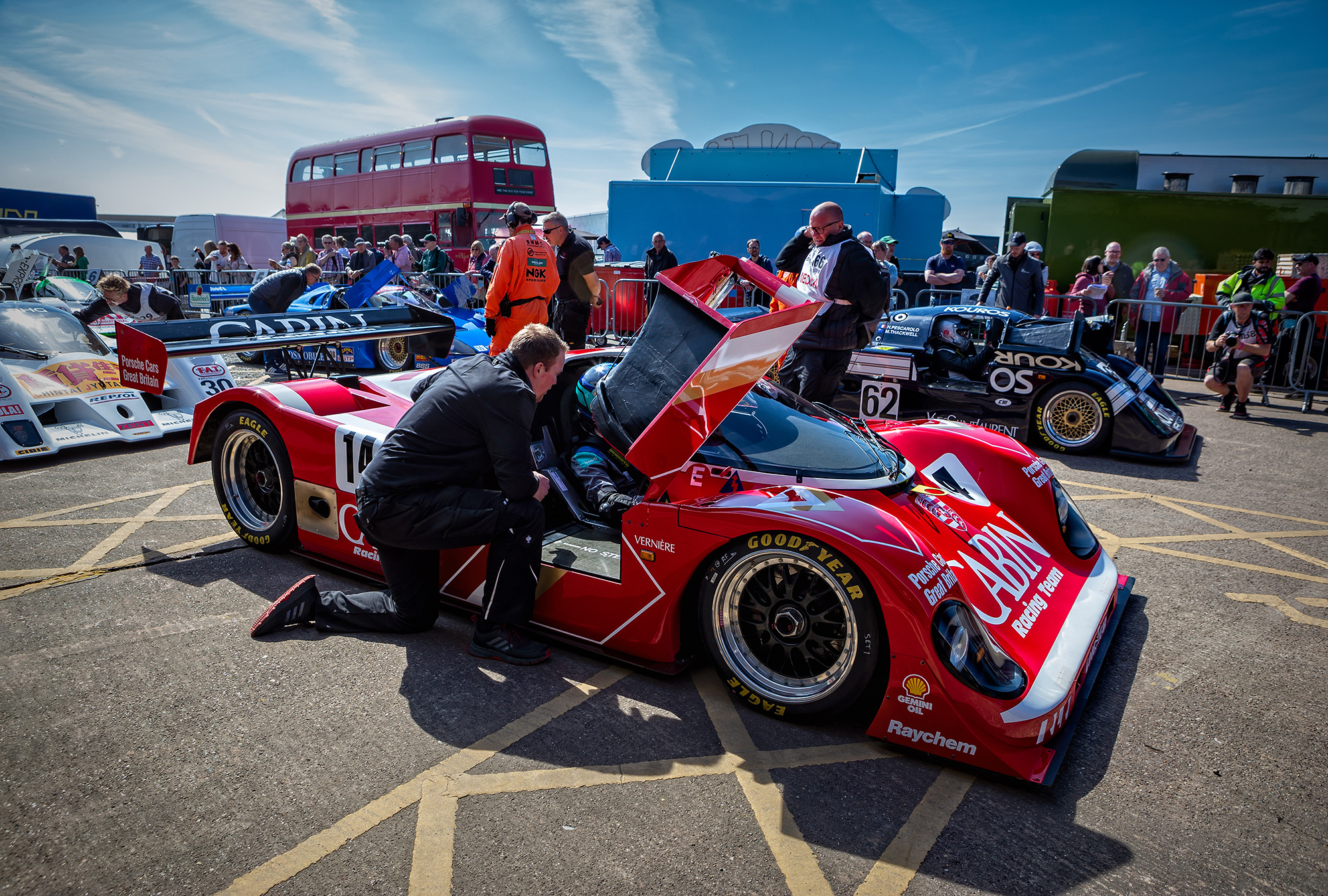 14 Group C cars took to the track from a range of marques including Porsche, Jaguar, Sauber, Lola, Spice and more. We entered the Richard Lloyd Racing Cabin car (962-200) and driving was shared between Henry Pearman and Mark Sumpter.