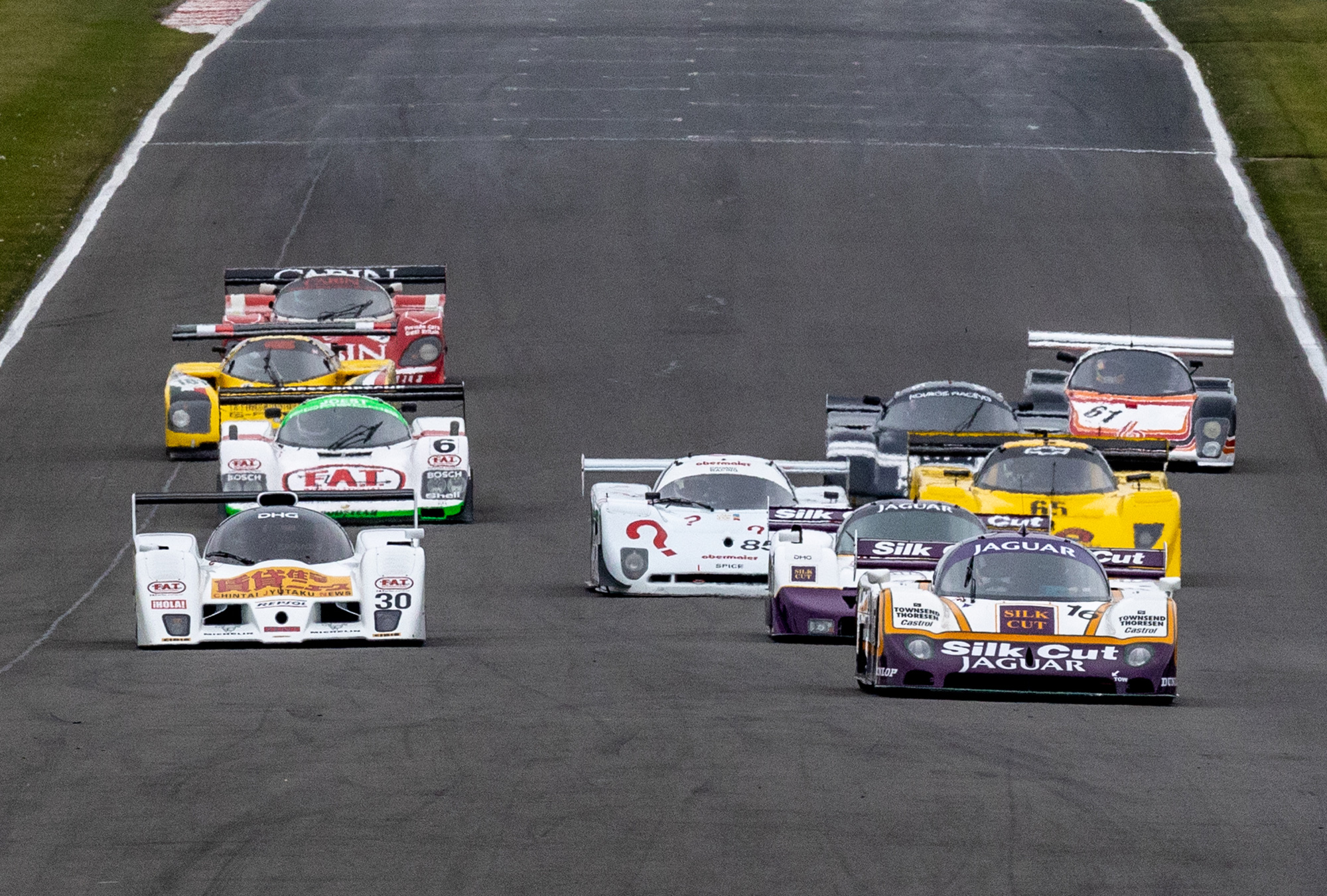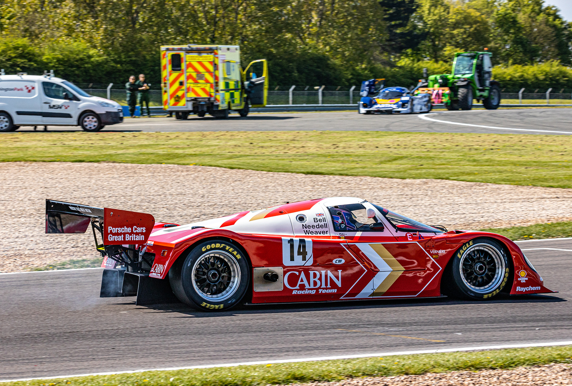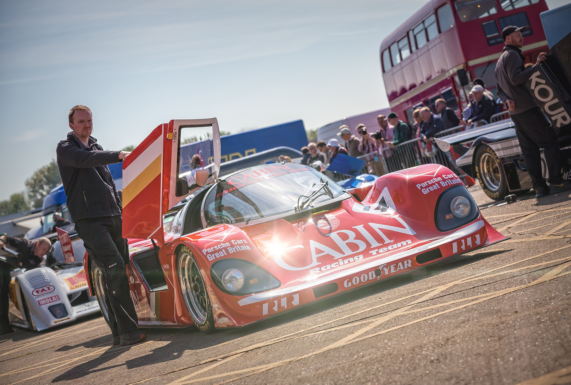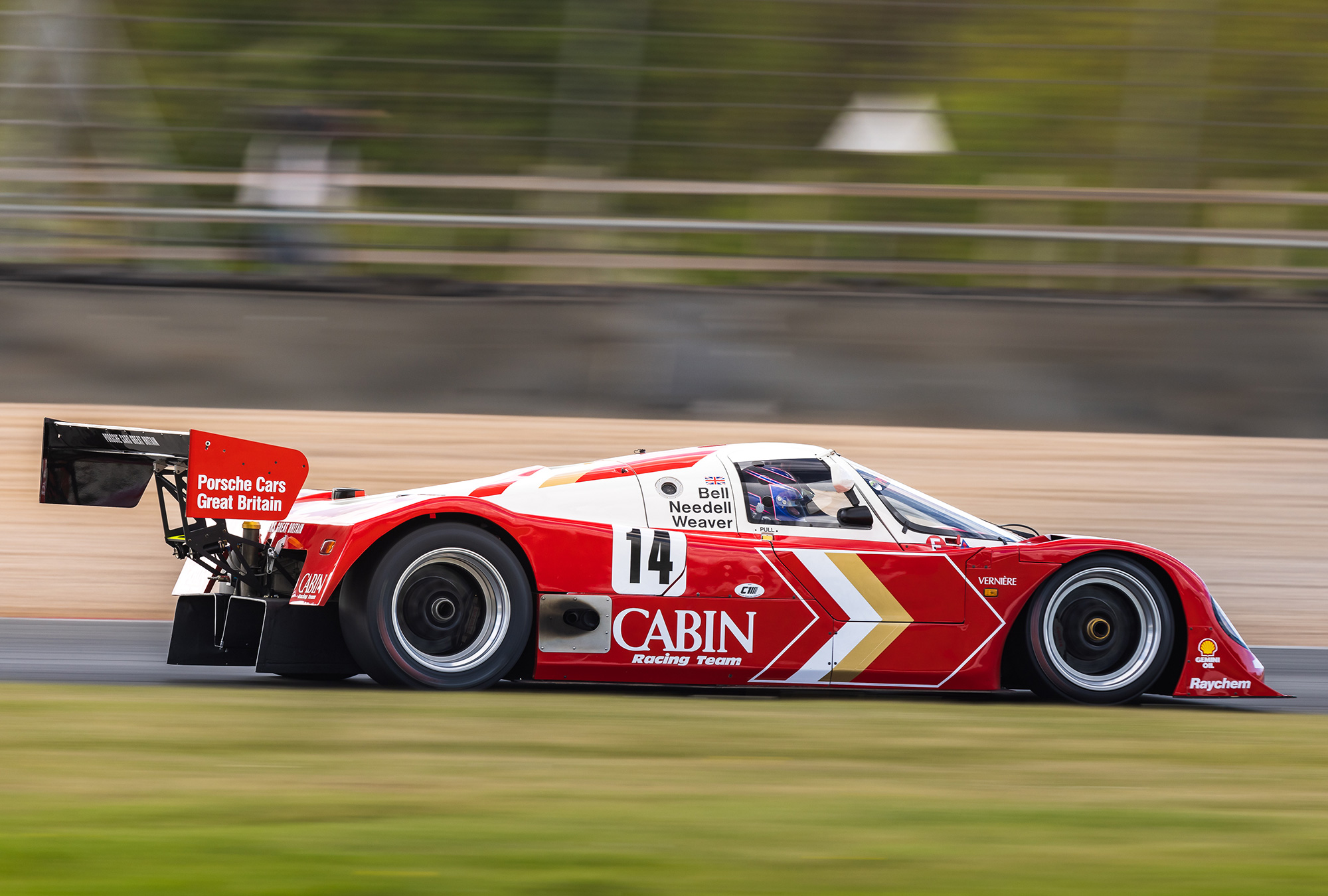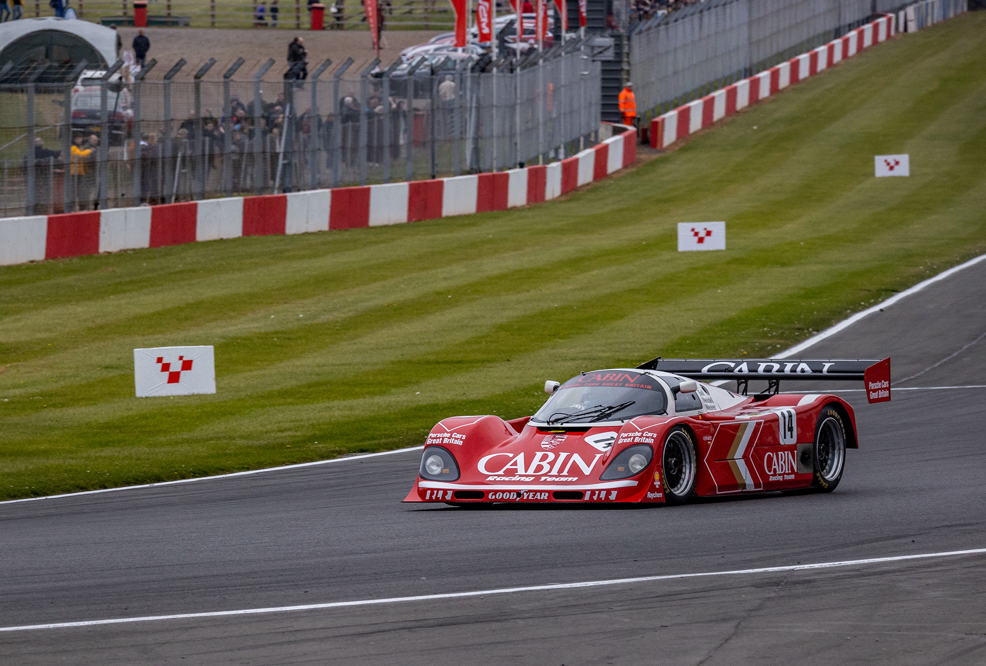 14 Group C cars took to the track from a range of marques including Porsche, Jaguar, Sauber, Lola, Spice and more. We entered the Richard Lloyd Racing Cabin car (962-200) and driving was shared between Henry Pearman and Mark Sumpter.