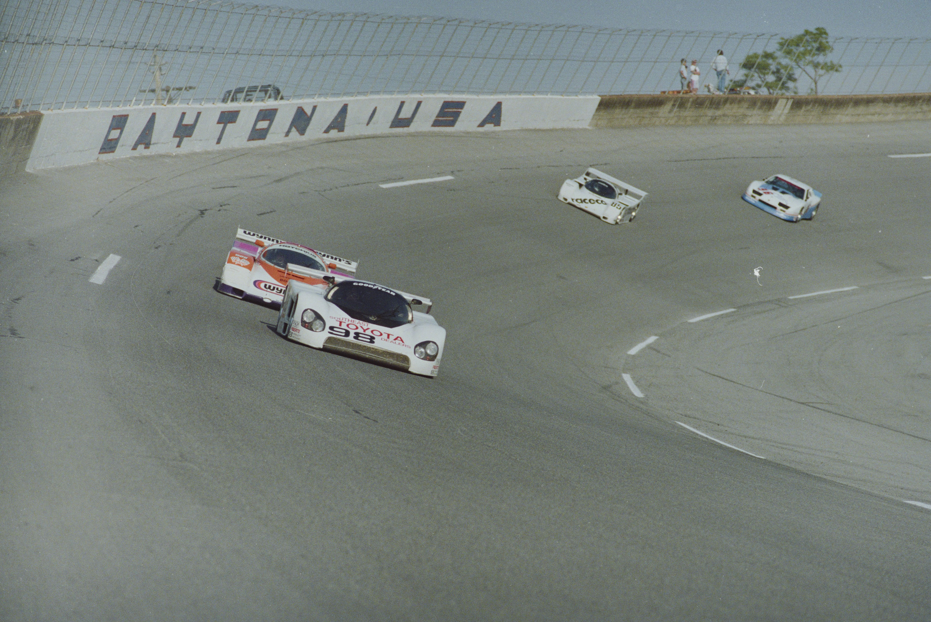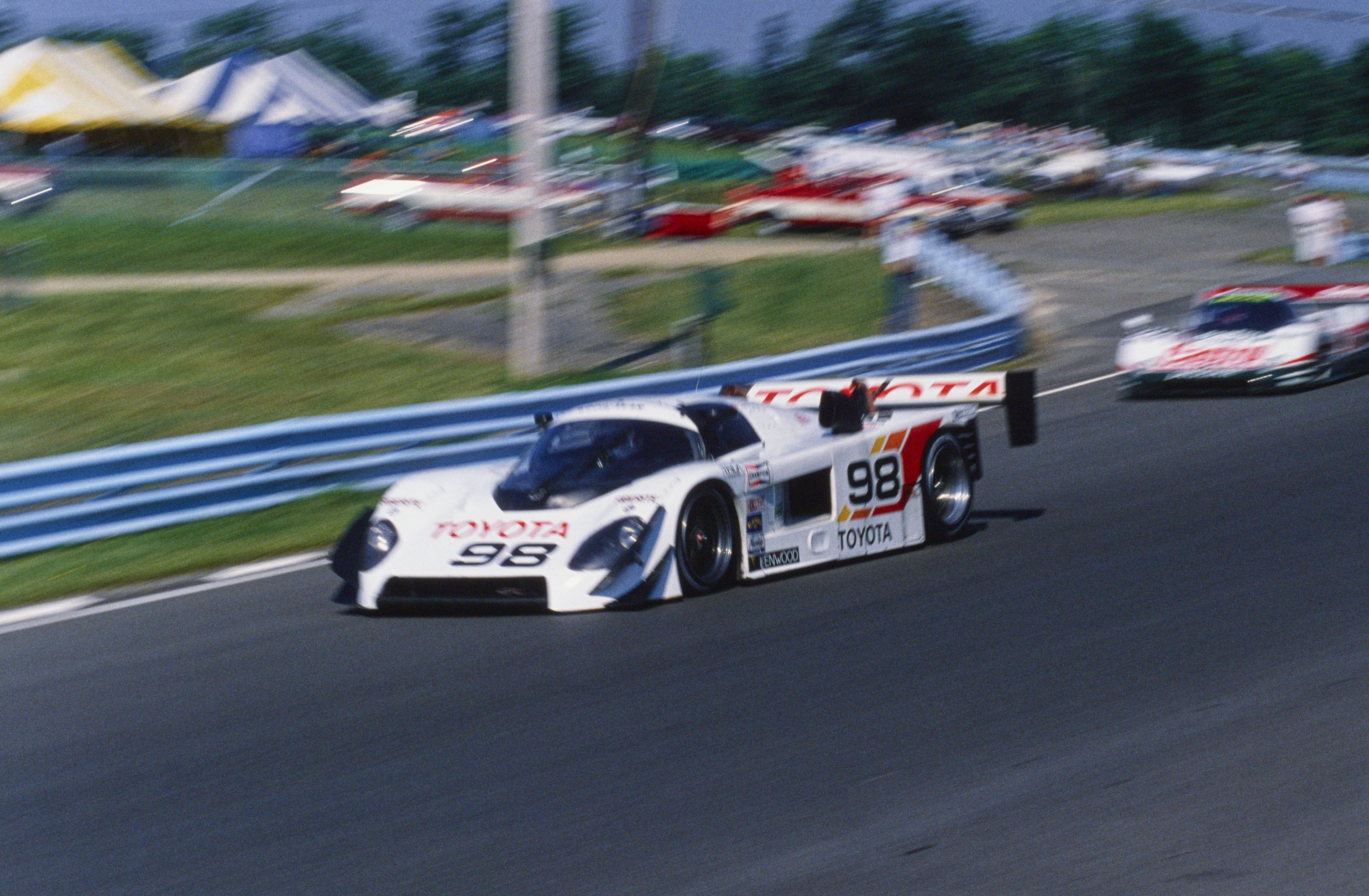 These waspish yellow, black and white colours had been made famous by sponsor NewMan on the double Le Mans winning Joest Porsches, and its fair to say that they suited the curvier Toyota very well indeed – perhaps even better than the squarer Porsche 956.