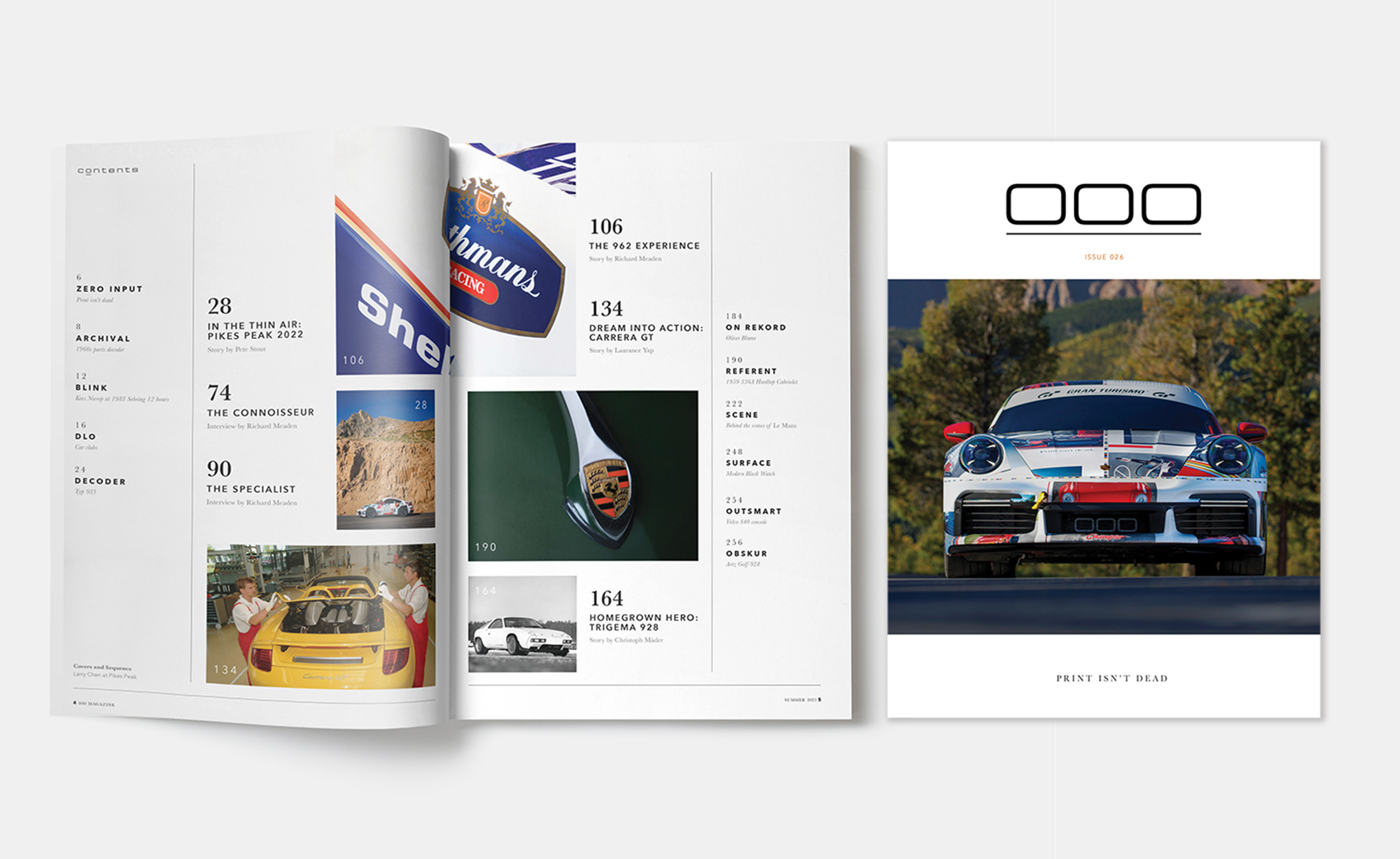 If you're going to the fantastic Porsche Rennsport Reunion 7 between September 28th and October 1st 2023 you can find them onsite at Stand 41 with the 000 911 Turbo S Pike’s Peak winner, the 000 718 Spyder, subscriptions, back issues, special events and more.